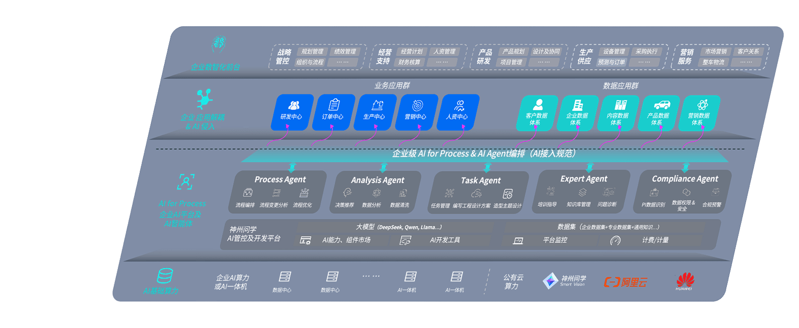 端到端的一站式AI工作空间深度融合了从企业战略规划到日常经营的全流程业务板块,,,定向解决车企内部领域多、、、、部门多、、、、链条长、、场景碎片化等难题,,支持车企快速构建以AI为核心的生产力写作体系,,,实现任务执行与AI能力的无缝集成与交互